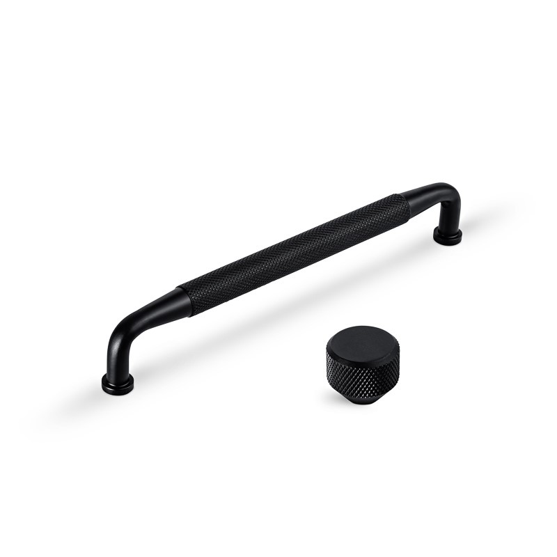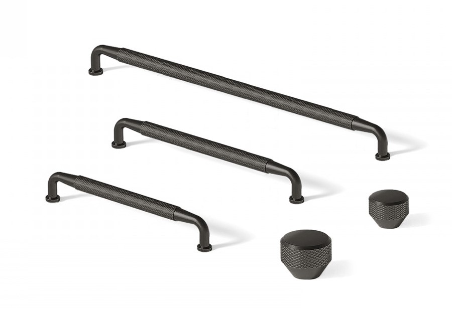 Radełkowana duża gałka o średnicy Ø 26 mm w kolorze czarny mat.