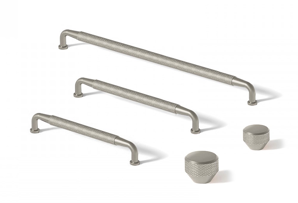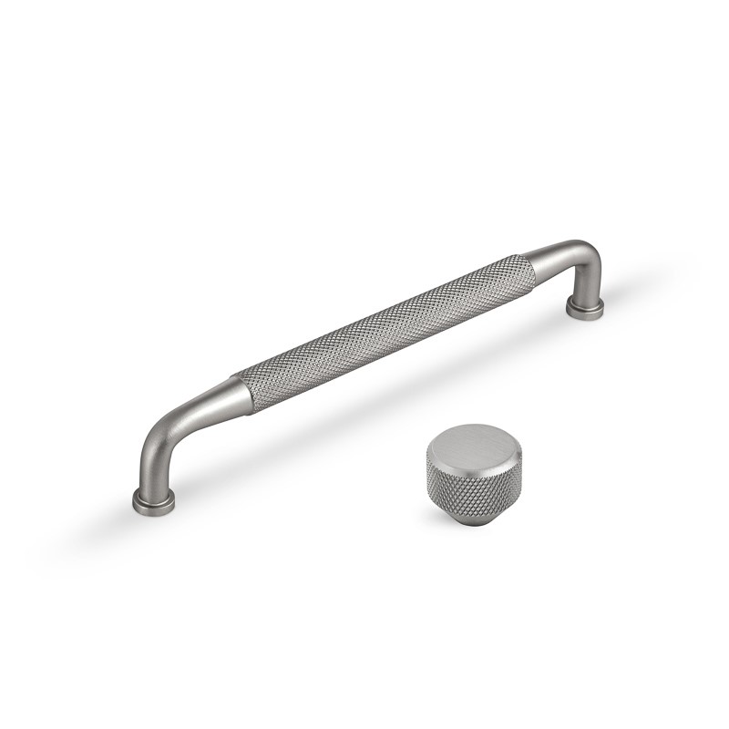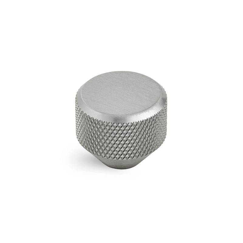 Radełkowana duża gałka o średnicy Ø 26 mm w kolorze nikiel satynowy.