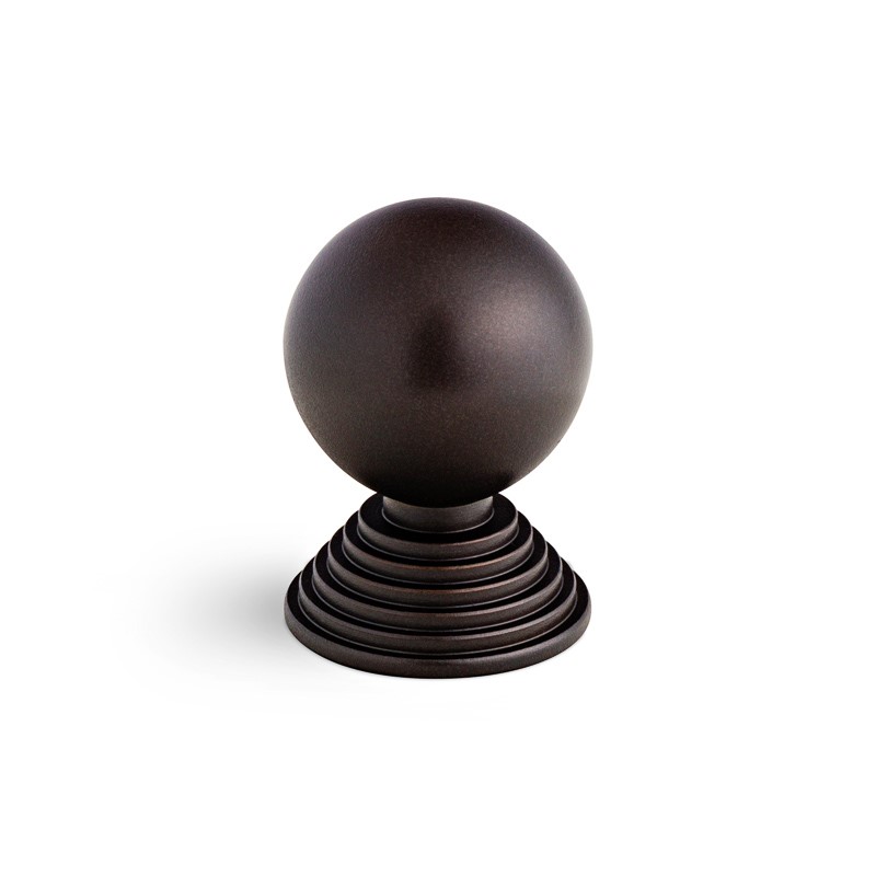 Mosiężna gałka w pokryciu brązowym o oryginalnym kształcie o średnicy Ø 32 mm.