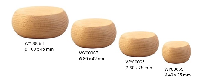 Noga z drewna bukowego o wymiarach 25 x Ø60 x Ø45 mm w naturalnym kolorze, nielakierowana.