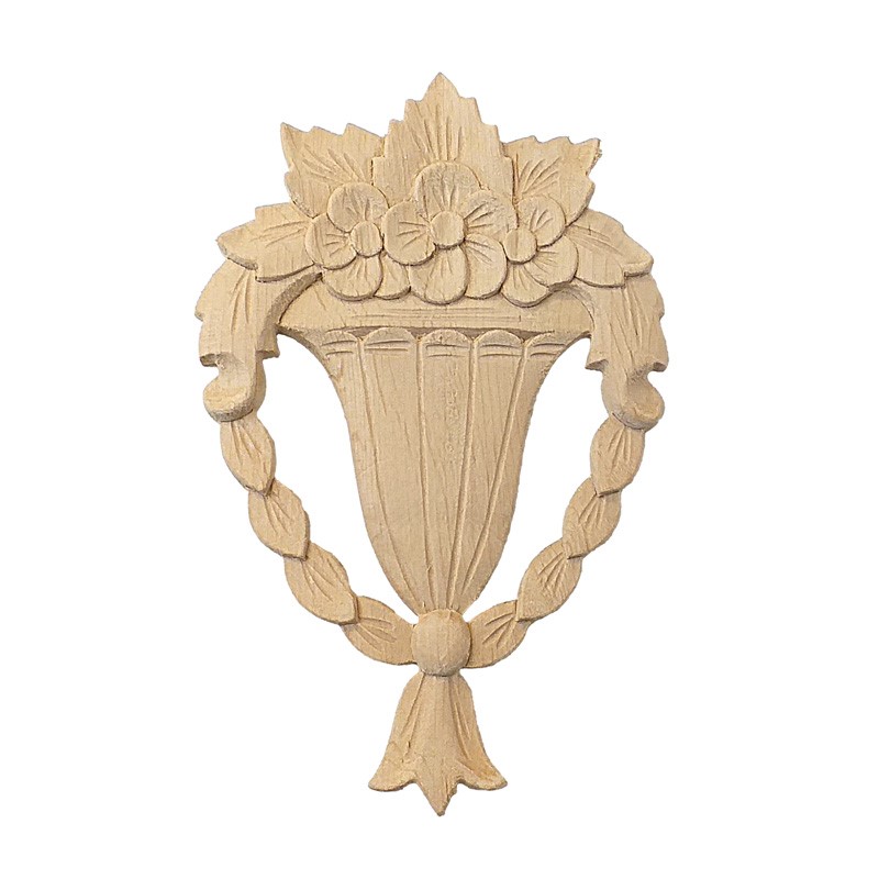 Ornament, dekor z drewna, ręcznie rzeźbiony o kształtach roślinnych. Wymiary to: