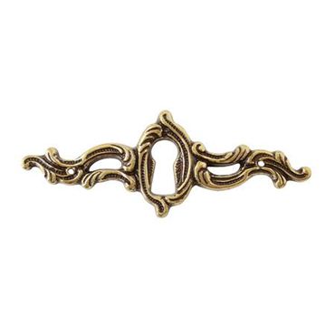 Ozdobny, poziomy szyld w stylu Ludwik XV w kolorze starego złota o wymiarach 82 x 30 mm.