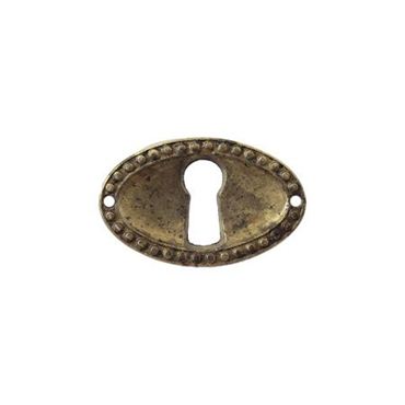 Ozdobny szyld w stylu Ludwik XVI w kolorze mosiądzu patynowanego o wymiarach 35 x 22 mm.