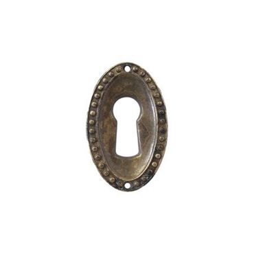 Ozdobny szyld, pionowy w stylu Ludwik XVI w kolorze mosiądzu patynowanego o wymiarach 35 x 22 mm.