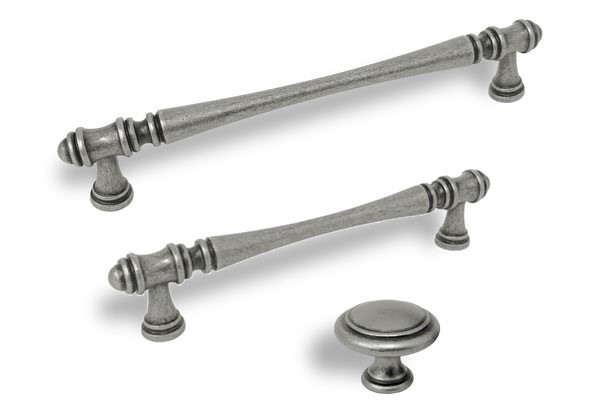 Dekoracyjny uchwyt w kolorze starej stali w angielskim stylu country o rozstawie otworów montażowych 160 mm.