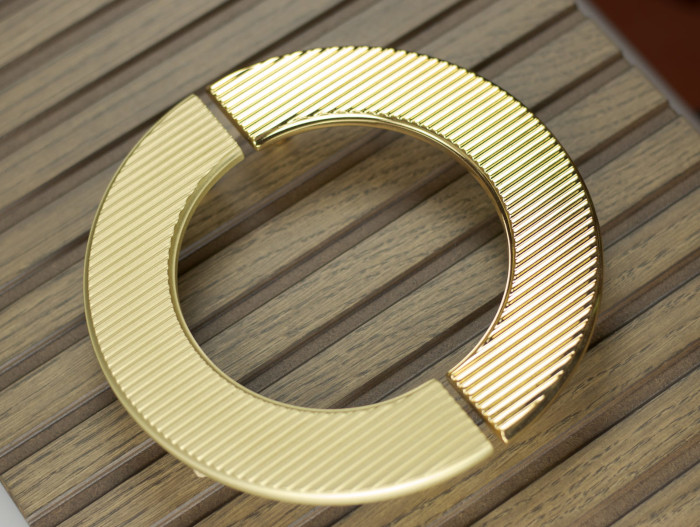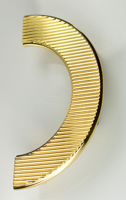 Uchwyt inspirowany stylem Art Deco. Półokrągły kształt zapewni ciekawy efekt wizualny na różnych rodzajach mebli.