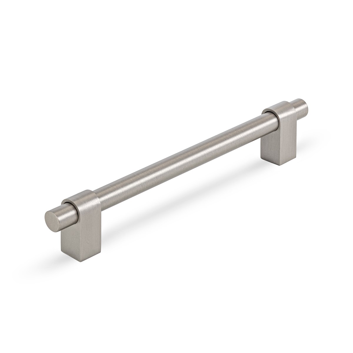 Elegancki uchwyt w kolorze niklu szczotkowanego o rozstawie otworów montażowych 160 mm.