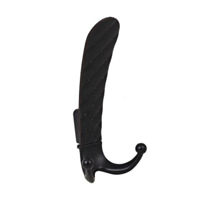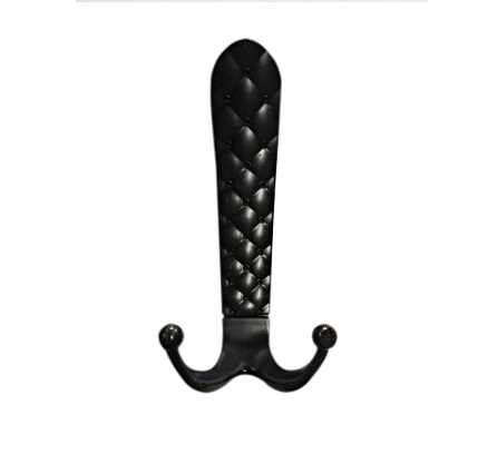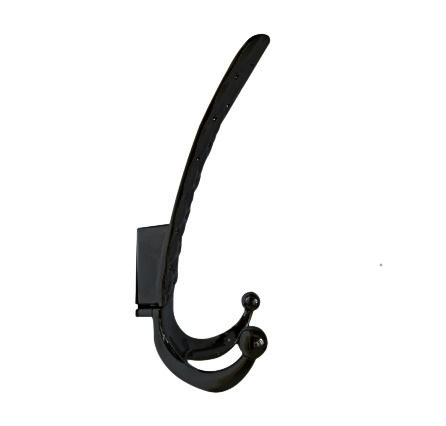 Czarny wieszak o trzech hakach o wysokości 140 mm.